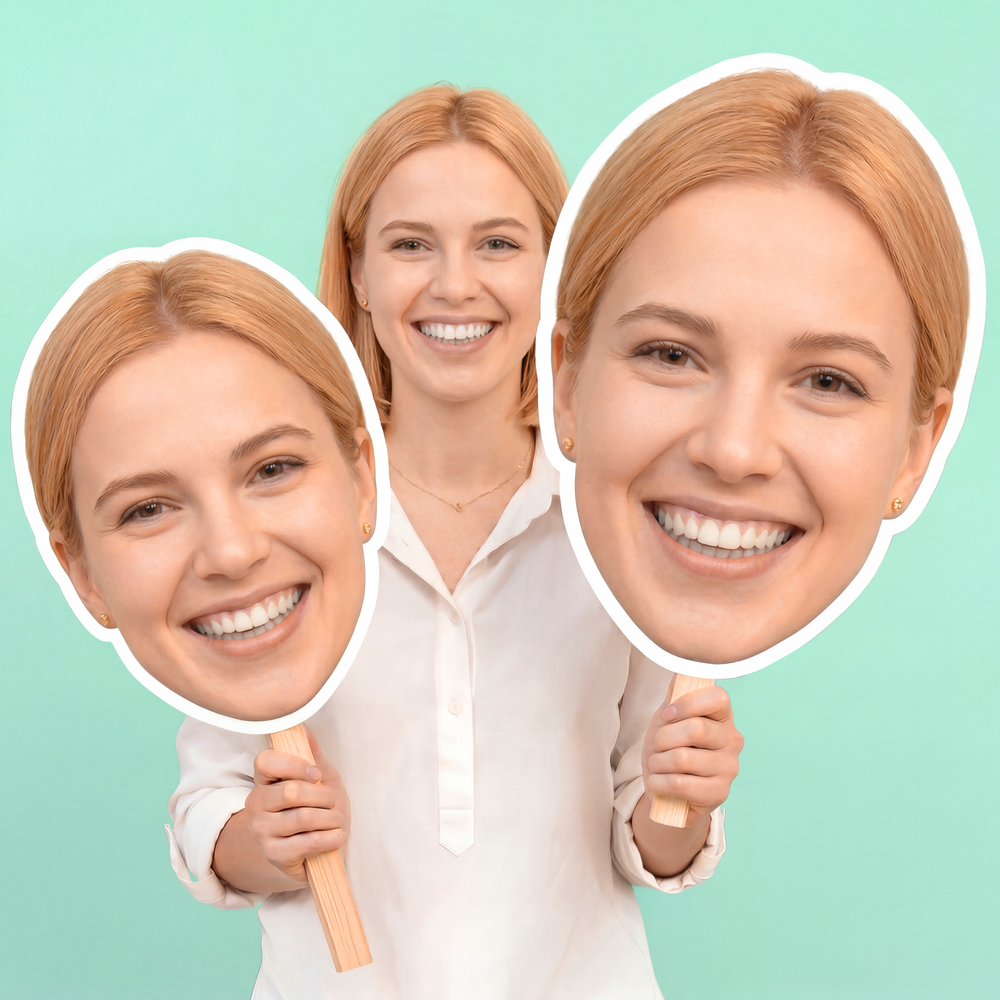 Go big with your celebration. This custom giant face cutout is made from your uploaded photo and mounted on a stick—perfect for the crowd, the camera, and the biggest moments of the year.