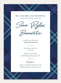Plaid Border Bar Mitzvah Invitations