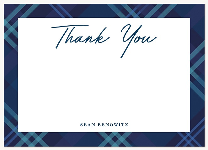 Mark this sacred milestone with a Bar Mitzvah invitation that perfectly balances tradition and contemporary style. The sophisticated navy plaid border frames your celebration details with diagonal stripes in varying blue tones, while elegant script typography adds a personal touch. Customize this meaningful announcement on premium cardstock with your choice of luxurious finishes.