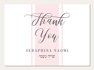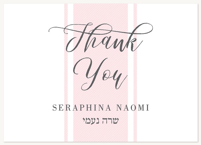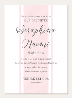Mark this sacred milestone with a Bat Mitzvah invitation that perfectly balances tradition and elegance. Delicate pink stripes frame your celebration details, while flowing script typography adds a touch of sophistication. Available in premium cardstock options with your choice of finishes to create an invitation worthy of this meaningful occasion.