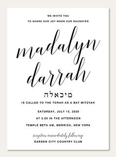 Bat Mitzvah RSVP Cards : Sophisticated Script