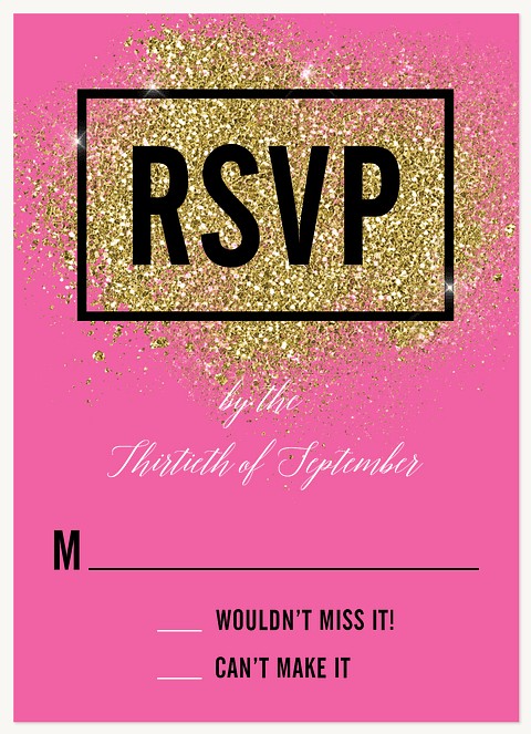 Express heartfelt thanks with these glamorous Bat Mitzvah thank you cards featuring a dazzling gold faux glitter effect on a vibrant hot pink background. The bold black-framed message makes a striking statement while elegant script adds sophisticated charm. Professionally printed on premium cardstock with customizable inside and back designs.
