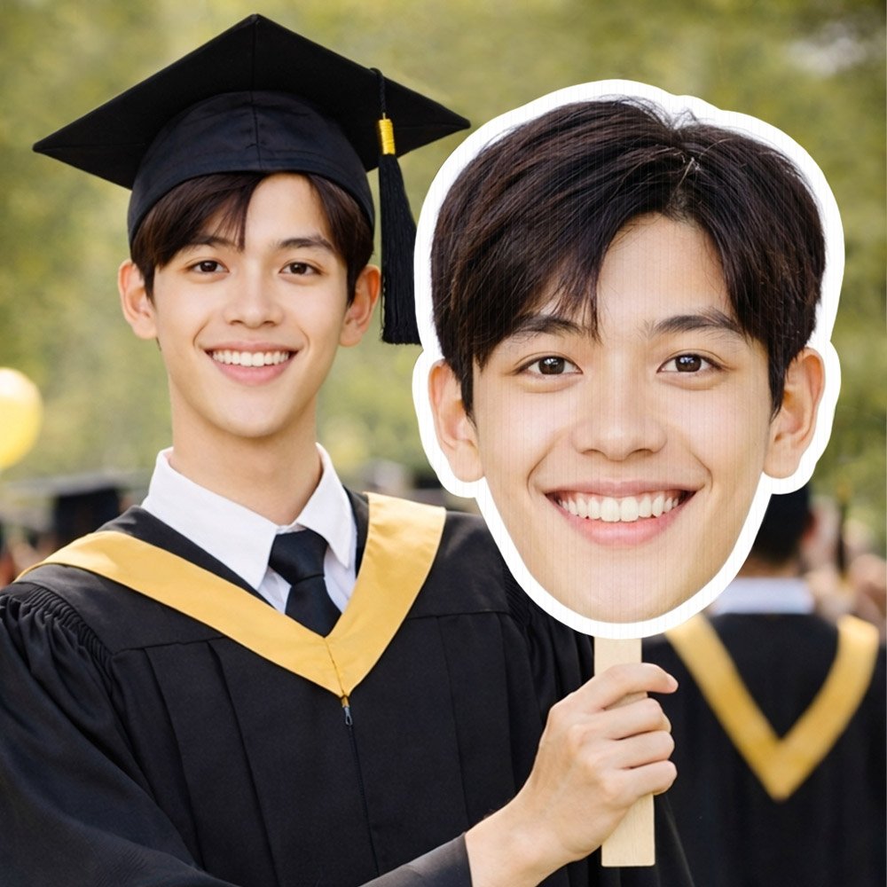 Go big with your celebration. This custom giant face cutout is made from your uploaded photo and mounted on a stick—perfect for the crowd, the camera, and the biggest moments of the year.