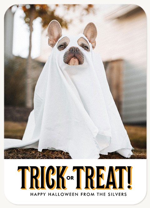 Add some playful spirit to your Halloween greetings with this charming photo card design. Bold black and orange typography makes a festive statement beneath your chosen image, creating the perfect balance of fun and style. Customize with your favorite photo to create a memorable Halloween card that friends and family will love.
