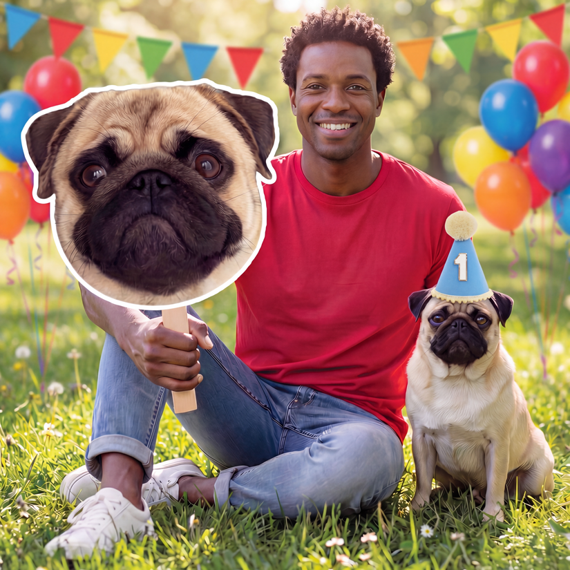 Go big with your celebration. This custom giant face cutout is made from your uploaded photo and mounted on a stick—perfect for the crowd, the camera, and the biggest moments of the year.