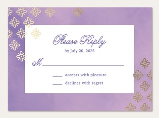 Celebrate this cherished milestone with an elegant Quinceañera invitation featuring delicate gold faux foil flower stamps dancing across a dreamy purple watercolor background. The sophisticated design balances traditional formality with modern grace, while premium paper options ensure this special announcement makes a lasting impression.