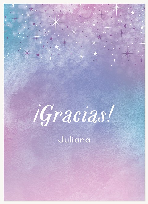 Transform your Quinceañera celebration into a magical moment with this enchanting invitation featuring a dreamy watercolor sky of purple, pink and blue hues adorned with twinkling stars. The elegant script typography creates a fairytale aesthetic perfect for your special day. Available in premium cardstock options with choice of luxurious finishes.