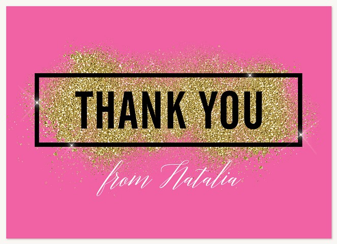 Make a glamorous statement with this bold Quinceañera invitation featuring dramatic gold faux glitter effects on a vibrant hot pink background. The contemporary design pairs striking typography with an elegant frame for a perfect blend of tradition and modern style. Available in premium paper options with customizable details to create your perfect celebration announcement.