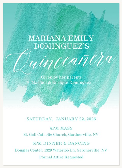 Capture the elegance of your Quinceañera celebration with this sophisticated RSVP card featuring graceful turquoise script. The clean, minimalist design creates a perfect balance of modern style and timeless charm. Available in multiple premium finishes including pearl shimmer to complement your celebration's style.