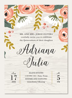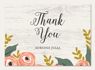Express heartfelt gratitude with these enchanting Quinceañera thank you cards featuring delicate painted peonies and golden botanicals on a rustic whitewashed background. The elegant script typography and soft coral blooms create a perfect blend of sophistication and natural beauty. Professionally printed on premium cardstock with customizable interior and reverse side.