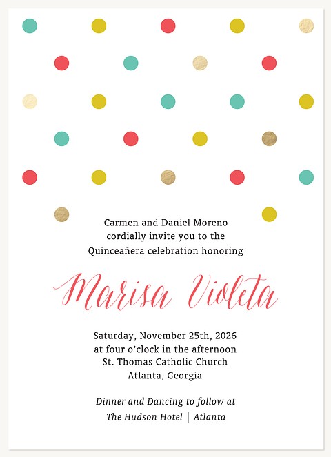 When you order this invitation you'll have the option to add matching RSVPs and Thank You Notes to complete your invitation suite.personalize your invitation suite