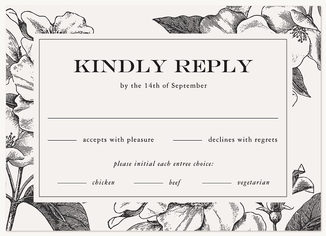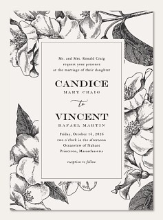 Express heartfelt gratitude with this sophisticated thank you card featuring classic botanical illustrations in timeless black and white. Elegant serif typography takes center stage, framed by delicate vintage-inspired florals and leaves. Printed on premium cardstock with customizable interior and reverse side for your personal message.