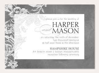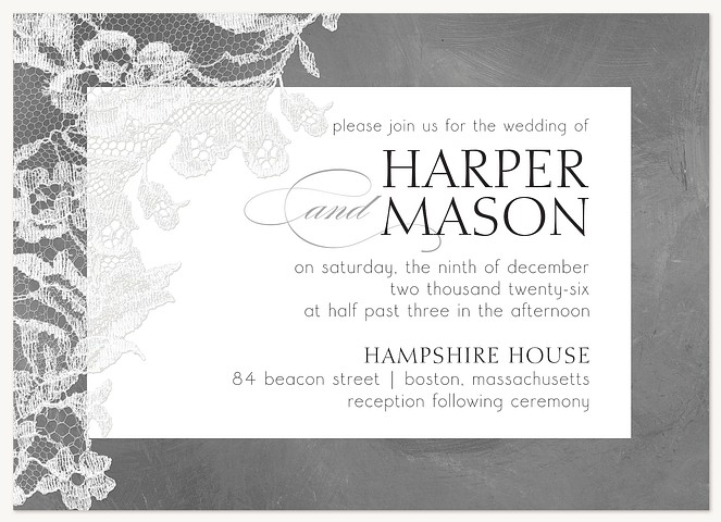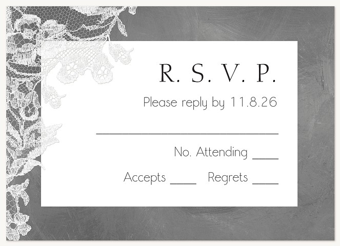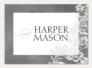 Express your gratitude with timeless sophistication in this elegant thank you card. Delicate lace detailing adorns the corners of a refined chalkboard background, while classic typography creates a perfectly balanced composition. Printed on premium cardstock with your choice of luxurious finishes to make your message of thanks truly memorable.