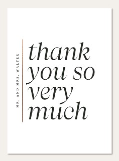 Express heartfelt gratitude with this sophisticated thank you card featuring dramatic italic typography. The minimalist design showcases elegant serif lettering alongside a subtle faux metallic accent line. Printed on premium cardstock with customizable finishes, this contemporary design makes your message of appreciation truly memorable.