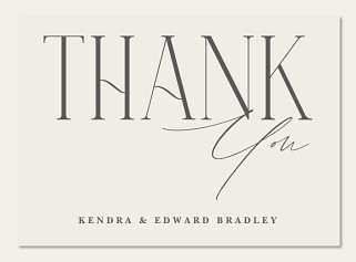 Express heartfelt gratitude with this sophisticated thank you card featuring bold serif typography artfully paired with flowing script details. The minimalist design creates a timeless aesthetic that speaks volumes. Customize with your personal message on premium cardstock with choice of luxurious finishes.