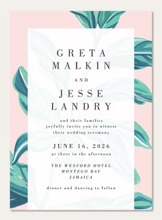 Express your gratitude with this sophisticated thank you card featuring watercolor tropical leaves in serene teal against a soft blush background. The bold serif typography creates an elegant focal point, framed by botanical elements that add natural sophistication. Professionally printed on premium cardstock with customizable interior and reverse side.