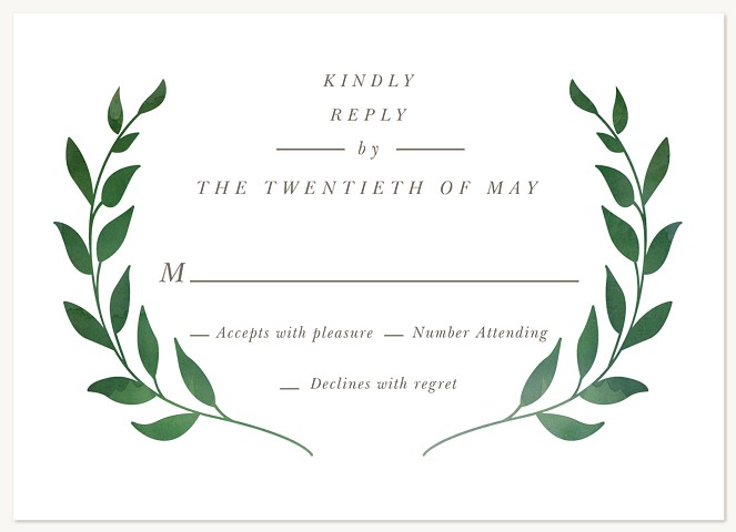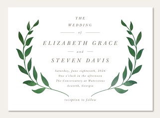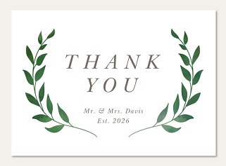Express your gratitude with timeless elegance in this sophisticated thank you card. Delicate watercolor olive branches frame your message in a classic wreath design, while refined serif typography adds a touch of traditional grace. Printed on premium cardstock with customizable options for a perfectly polished presentation.