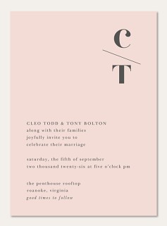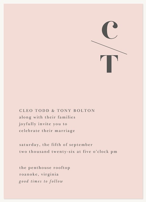 Express gratitude with sophisticated style through this minimalist thank you card featuring a bold serif monogram on a soft blush background. The contemporary diagonal design creates an artistic focal point that elevates your message. Customize with premium cardstock options and choice of elegant finishes.