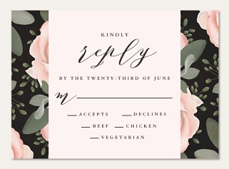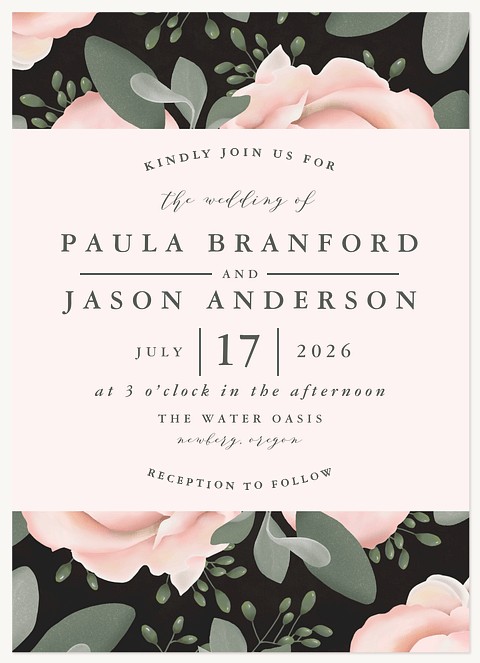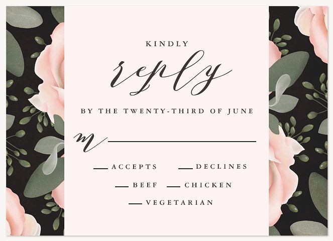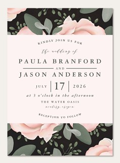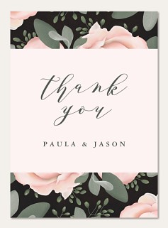 Express heartfelt gratitude with this romantic thank you card featuring watercolor peonies in soft peach tones against a dramatic black background. The elegant script calligraphy and blush pink center panel create a sophisticated balance of classic and contemporary style. Customize your message on premium cardstock with your choice of luxurious finish options.