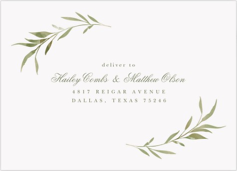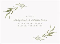 Express your gratitude with timeless elegance in this botanical thank you card. Delicate watercolor olive branches frame your message in soft sage green, while classic script typography adds a touch of sophistication. Printed on premium cardstock with customizable interior and reverse side for a truly personal message.