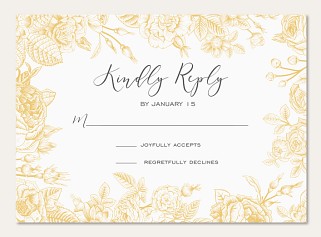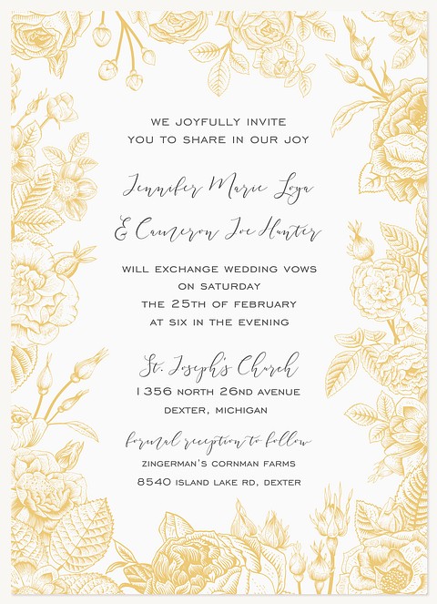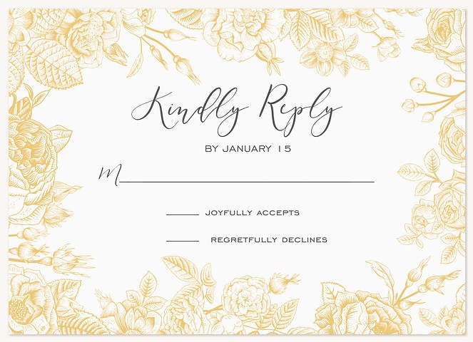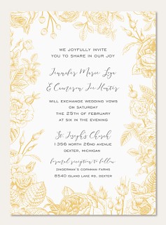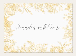 Express heartfelt gratitude with this enchanting thank you card featuring an intricate golden botanical border. Delicate vintage roses and flowing vines create an elegant frame, while premium cardstock ensures a luxurious feel. Customize with your personal message in sophisticated script typography.