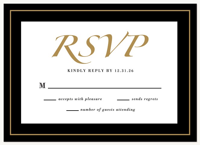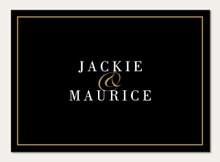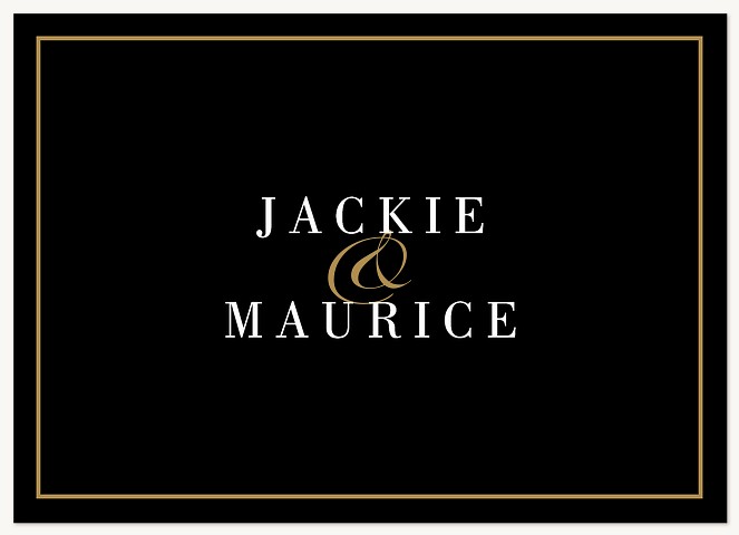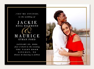 Make your wedding announcement unforgettable with this sophisticated split-panel invitation design. The striking contrast of a black panel adorned with elegant serif typography and framed in lustrous gold creates timeless appeal. Customize with your choice of premium papers and finishes to create an invitation that perfectly sets the tone for your celebration.