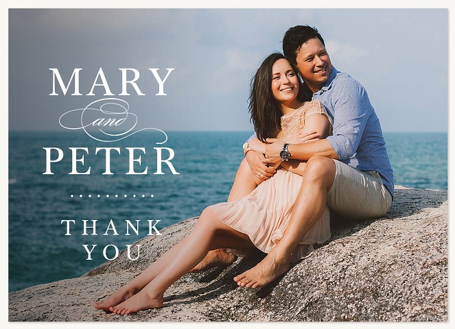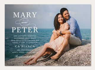 Transform your wedding announcement into a sophisticated story with this full-photo wedding invitation. Pristine white typography with graceful flourishes creates an elegant overlay, while the clean layout keeps the focus on your chosen image. Available in premium paper options with customizable finishing touches to perfectly capture your style.