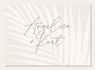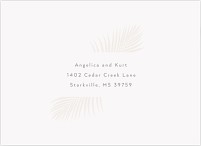 Transport guests to paradise with this sophisticated wedding invitation featuring delicate palm leaf silhouettes in soft blush tones. The modern script typography and clean layout create an effortlessly elegant tropical aesthetic. Available on premium cardstock with customizable finishing options to perfectly capture your destination celebration.