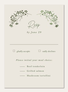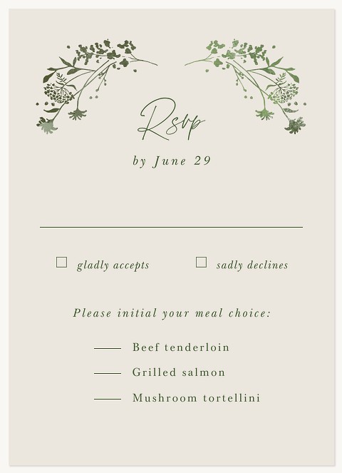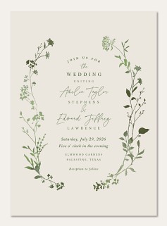 Frame your wedding celebration with delicate botanical elegance in this sophisticated invitation. Graceful wildflower stems and sage green foliage create a naturally romantic frame, while refined typography adds timeless sophistication. Available on premium cardstock with customizable finishing options to perfectly capture your wedding style.