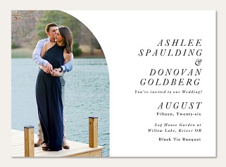 Make your wedding announcement as distinctive as your love story with this architecturally-inspired wedding invitation. The graceful arched frame creates an elegant focal point, while sophisticated typography combines italic and serif fonts for timeless appeal. Customize with your choice of premium papers and finishes to create an invitation that perfectly sets the tone for your celebration.
