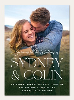 Make your wedding announcement unforgettable with this contemporary photo wedding invitation featuring an elegant gradient overlay. The sophisticated combination of serif and script typography creates a perfect balance of modern style and timeless romance. Customize with your choice of premium papers and finishes to create an invitation that sets the perfect tone for your celebration.