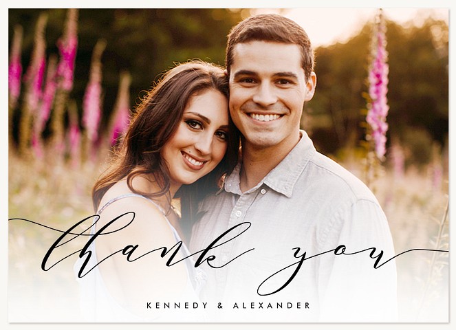 Make your wedding announcement unforgettable with this sophisticated photo invitation featuring an elegant typography layout with serif and script details. The refined gradient overlay adds a dreamy touch while maintaining perfect photo clarity. Available in premium paper options with customizable finishing touches.