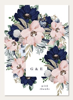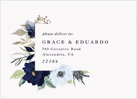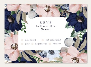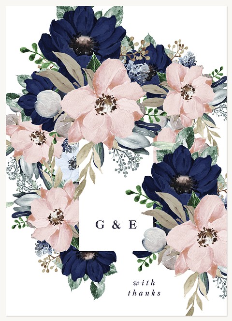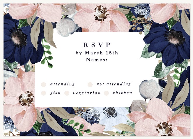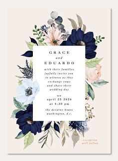 Transform your wedding announcement into an artistic masterpiece with this romantic watercolor invitation. Dramatic navy and soft blush blooms frame your ceremony details in elegant serif typography. Customize this botanical beauty on premium cardstock with your choice of luxurious finishes.