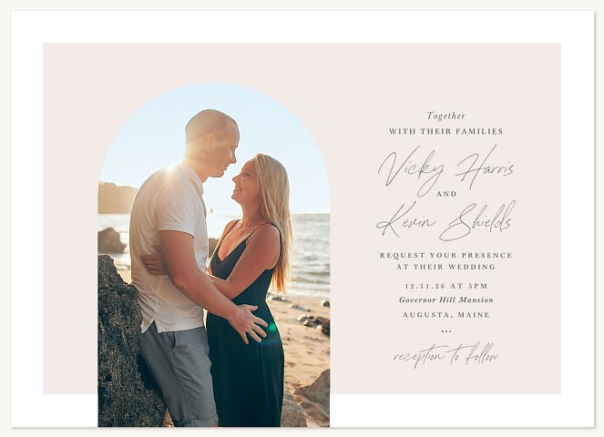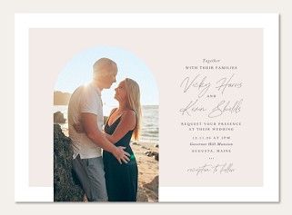 Elevate your wedding correspondence with this sophisticated RSVP card featuring dramatic script lettering and clean serif typography. The minimalist arch design creates an elegant frame for response options, while premium cardstock choices ensure a luxurious feel worthy of your special day.