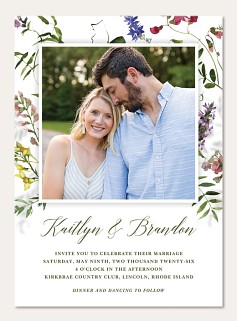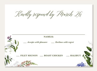 Capture the romance of your garden wedding with this botanical RSVP card featuring delicate watercolor florals and elegant calligraphy. Lavender blooms and graceful ferns frame your response options in a sophisticated layout that perfectly coordinates with your wedding suite. Available on premium cardstock with choice of luxurious finishes.