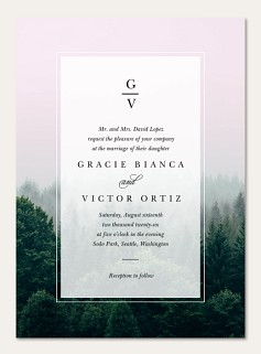 Transport your wedding guests to a misty mountain landscape with this ethereal RSVP card. The sophisticated design features a dreamy forest backdrop framed by scalloped edges and elegant serif typography. Perfectly balances natural majesty with classic formatting to make gathering responses effortless.
