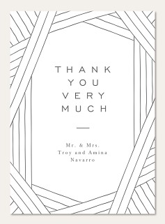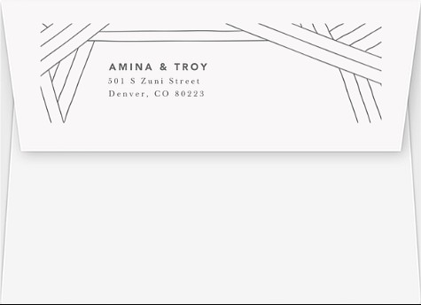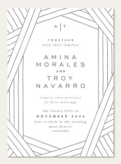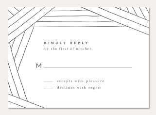 Elevate your wedding correspondence with this sophisticated RSVP card featuring striking geometric lines and refined sans-serif typography. The minimalist design creates an elegant frame through intersecting linear patterns, while the gently curved edges add a soft, romantic touch. Available on premium cardstock with multiple finish options to perfectly complement your wedding suite.