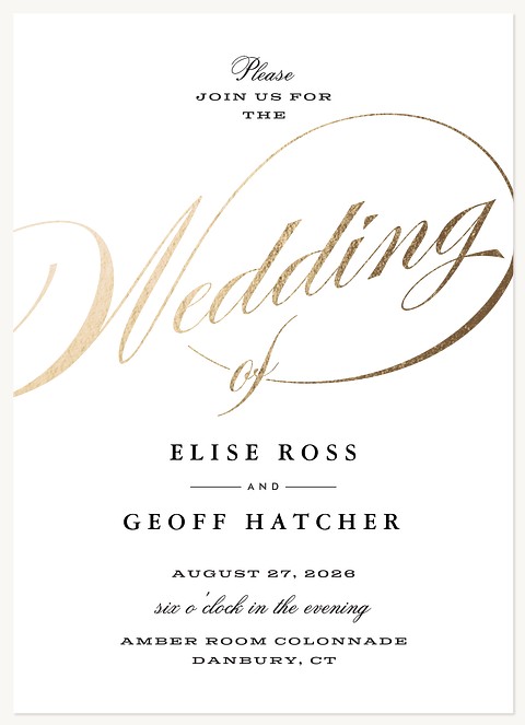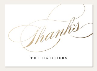 Express your gratitude with sophisticated elegance through this striking thank you card. The dramatic gold faux foil-style calligraphy sweeps gracefully across pristine white, accented by delicate flourishes. Printed on premium cardstock with your choice of finish, this timeless design makes every thank you note feel extra special.