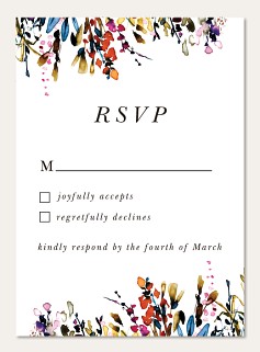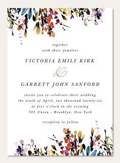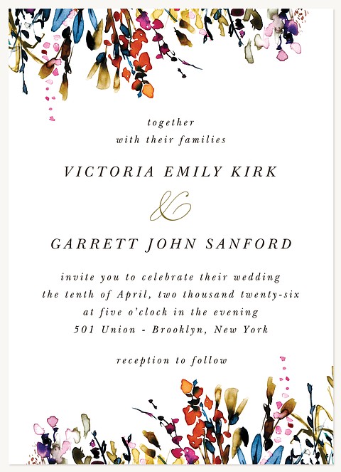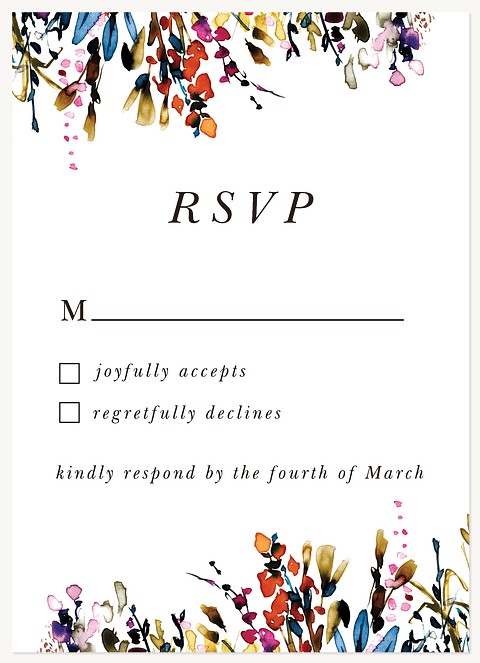 Express your gratitude with this artistically rendered thank you card featuring cascading watercolor wildflowers in vibrant jewel tones. The elegant serif typography pairs beautifully with the flowing botanical design, while the clean white background creates sophisticated balance. Customize this premium folded card with your personal message on premium cardstock.